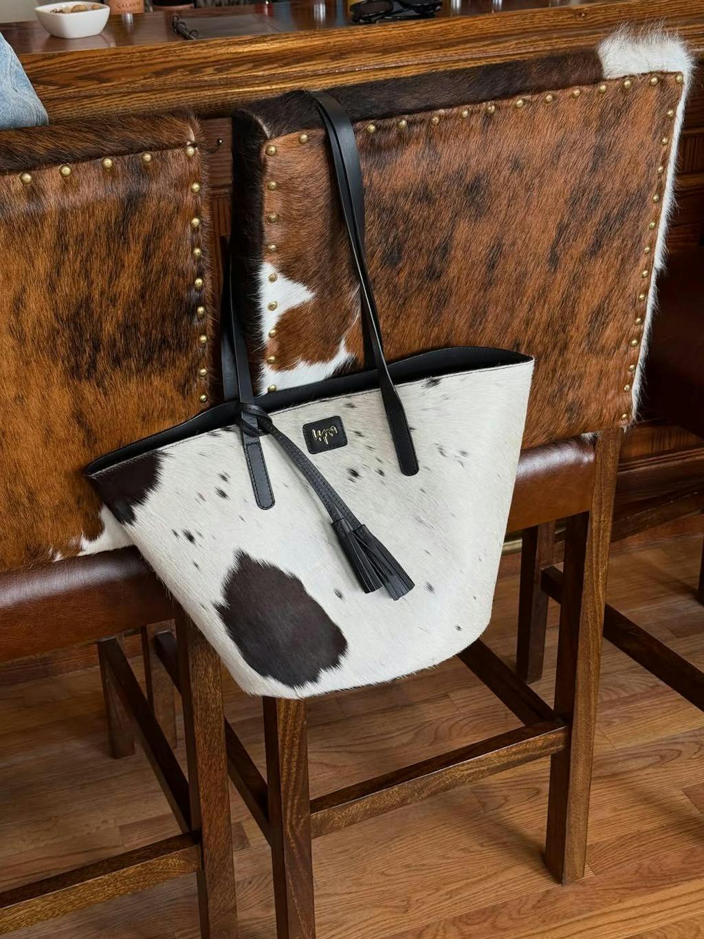 The Aurora Titan Tote Bag (Black & White) is a striking fusion of luxury and strength — handcrafted from hair-on full grain cowhide and top grain leather to make a powerful statement of presence. Designed for the woman who turns heads, commands rooms, and never settles for ordinary.