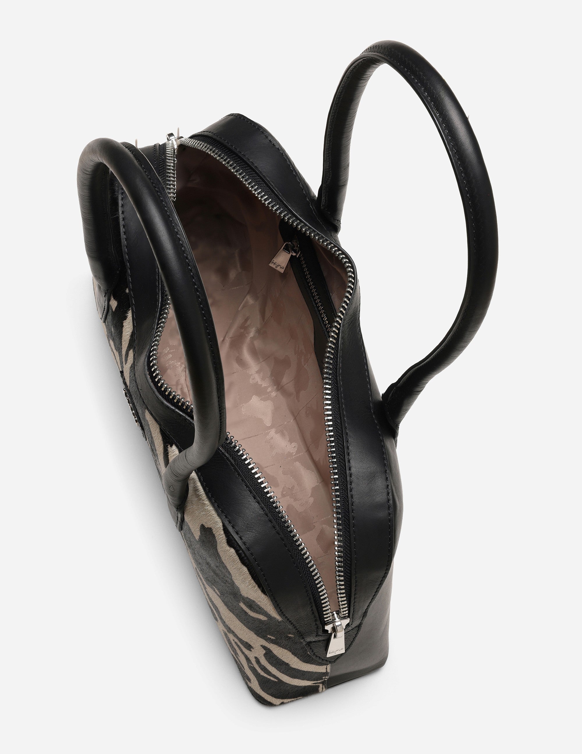 The extended zipper opening reveals a spacious interior lined with Hyna’s signature fabric, complete with a secure zipper pocket for your valuables.