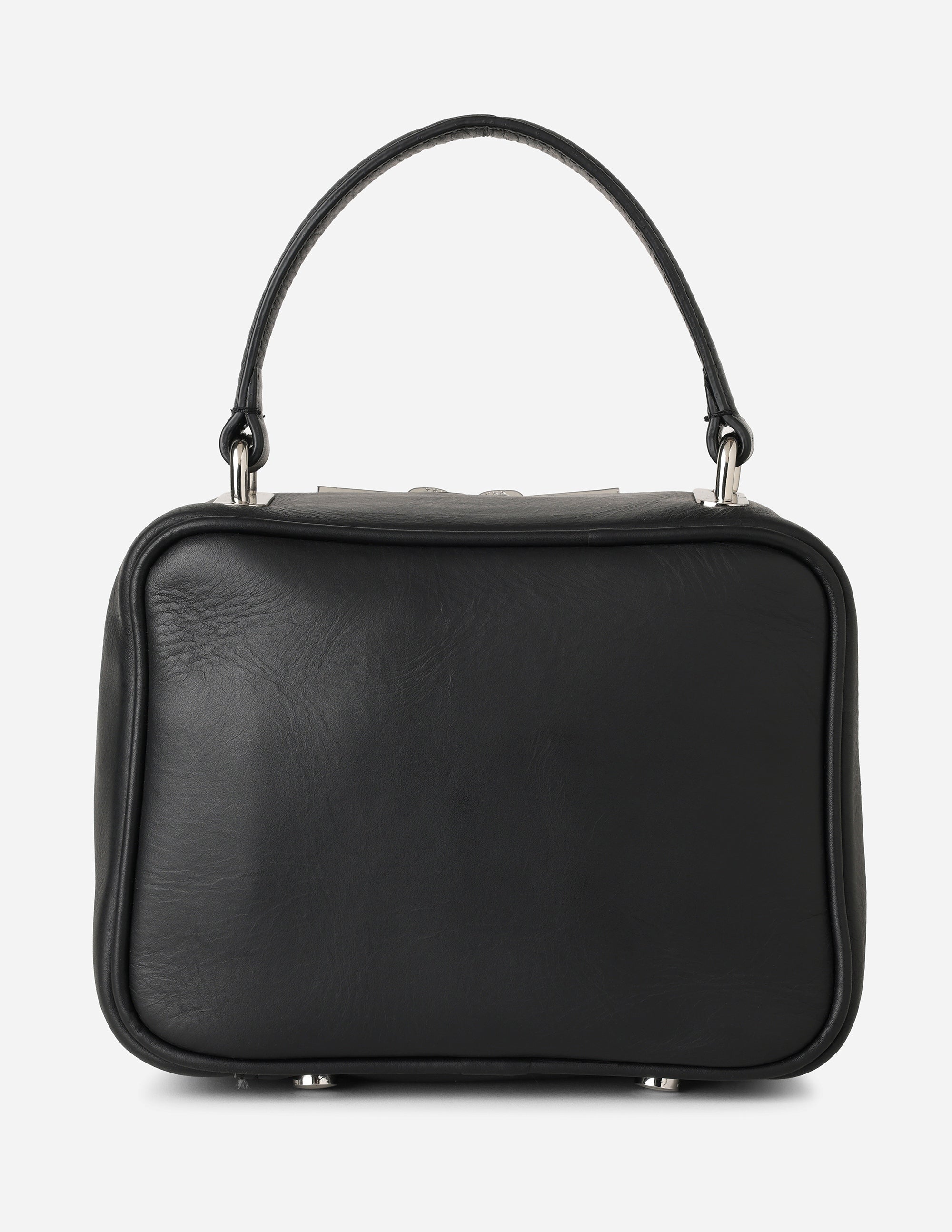 Finished with a sturdy top handle and protective metal feet, this box bag transitions effortlessly from a countertop vanity to a statement travel accessory.