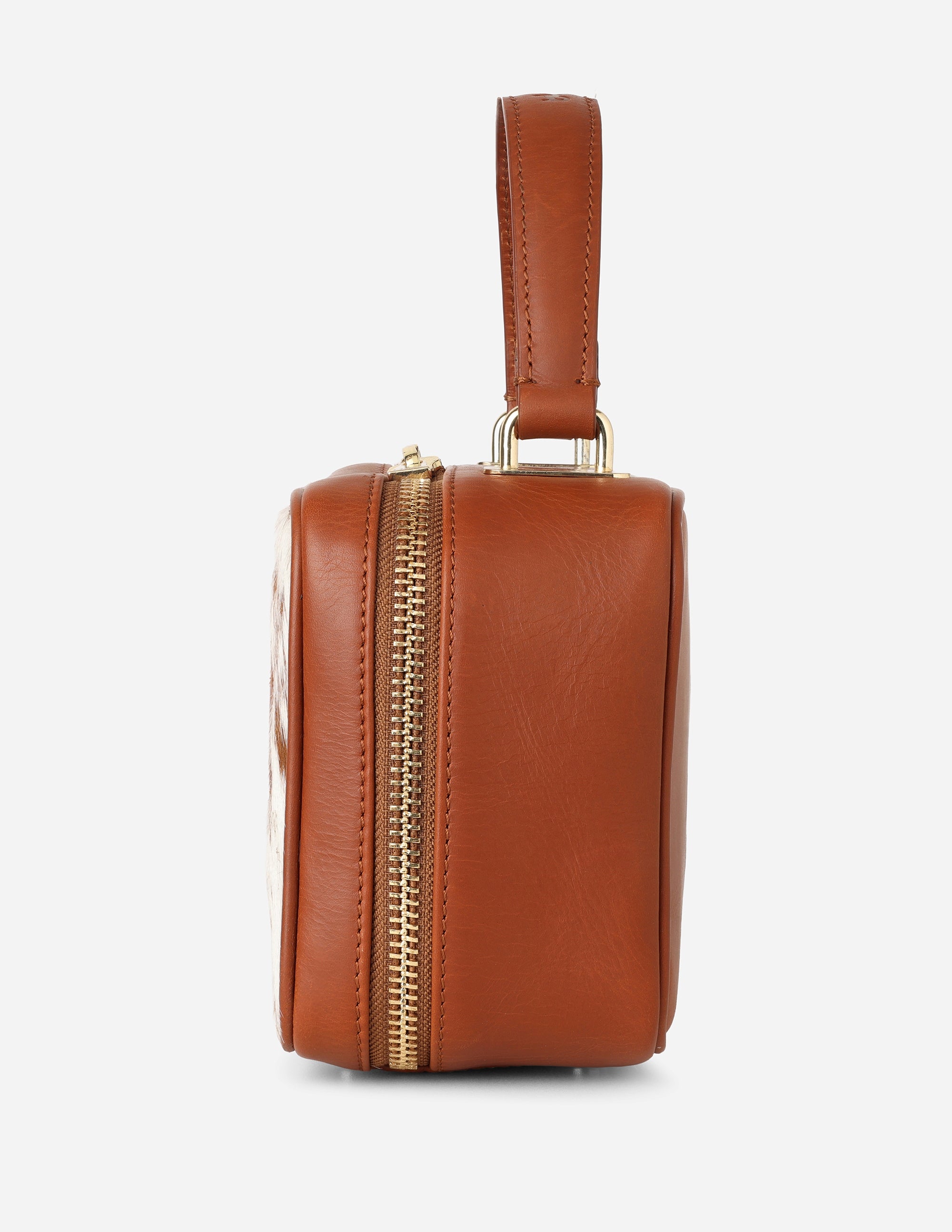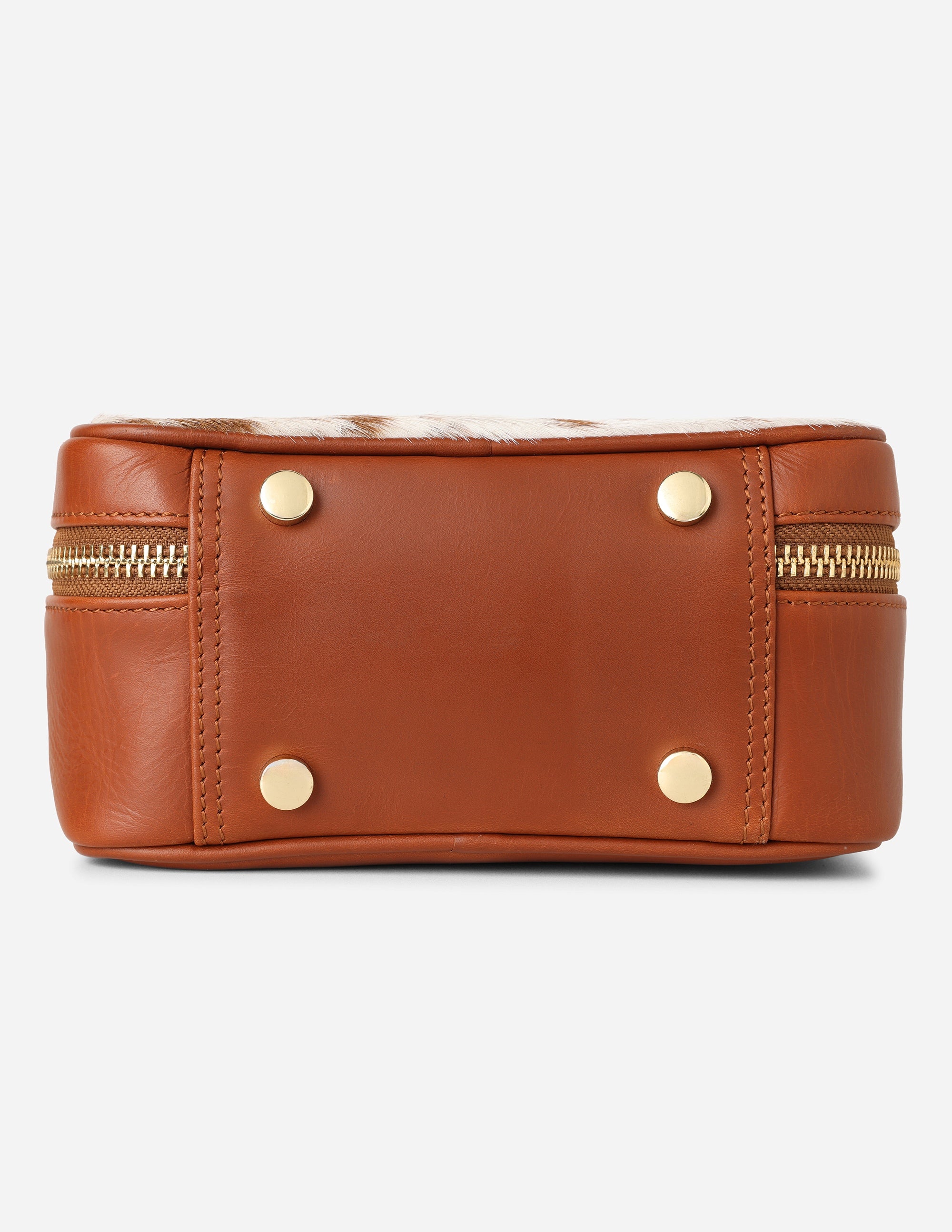 Experience the fusion of western charm and high-end utility with the Hyna Cowgirl Glam Box in Natural Tan hair-on-hide. This vanity case brings a touch of organic warmth to your daily ritual.