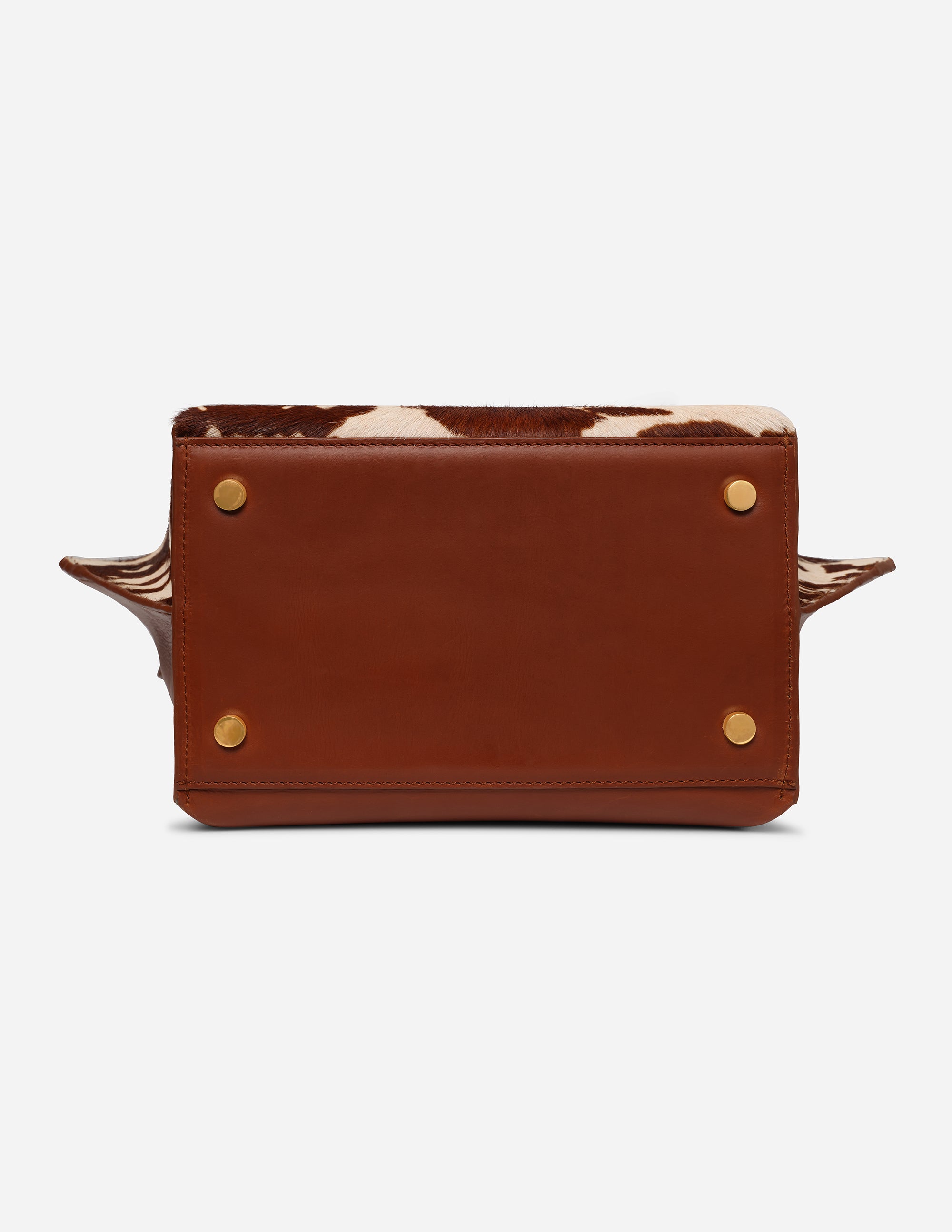 The Hyna Iconic Opal Tassel Handbag is crafted from premium soft calfskin leather for women who carry both purpose and poise. The 100% natural cowhide panel features expertly polished hair-on-hide, tinted to achieve a refined tan and white contrast that exudes sophistication.