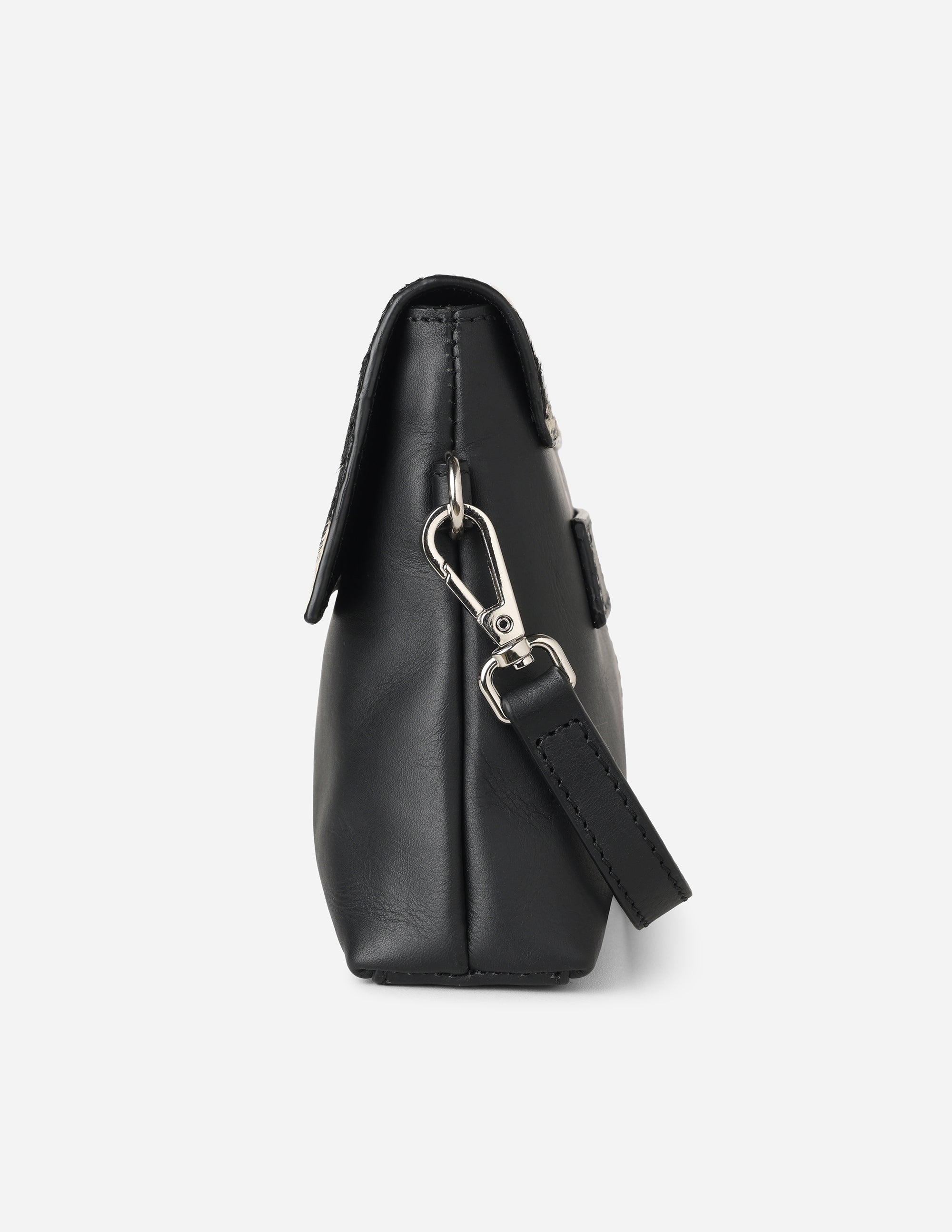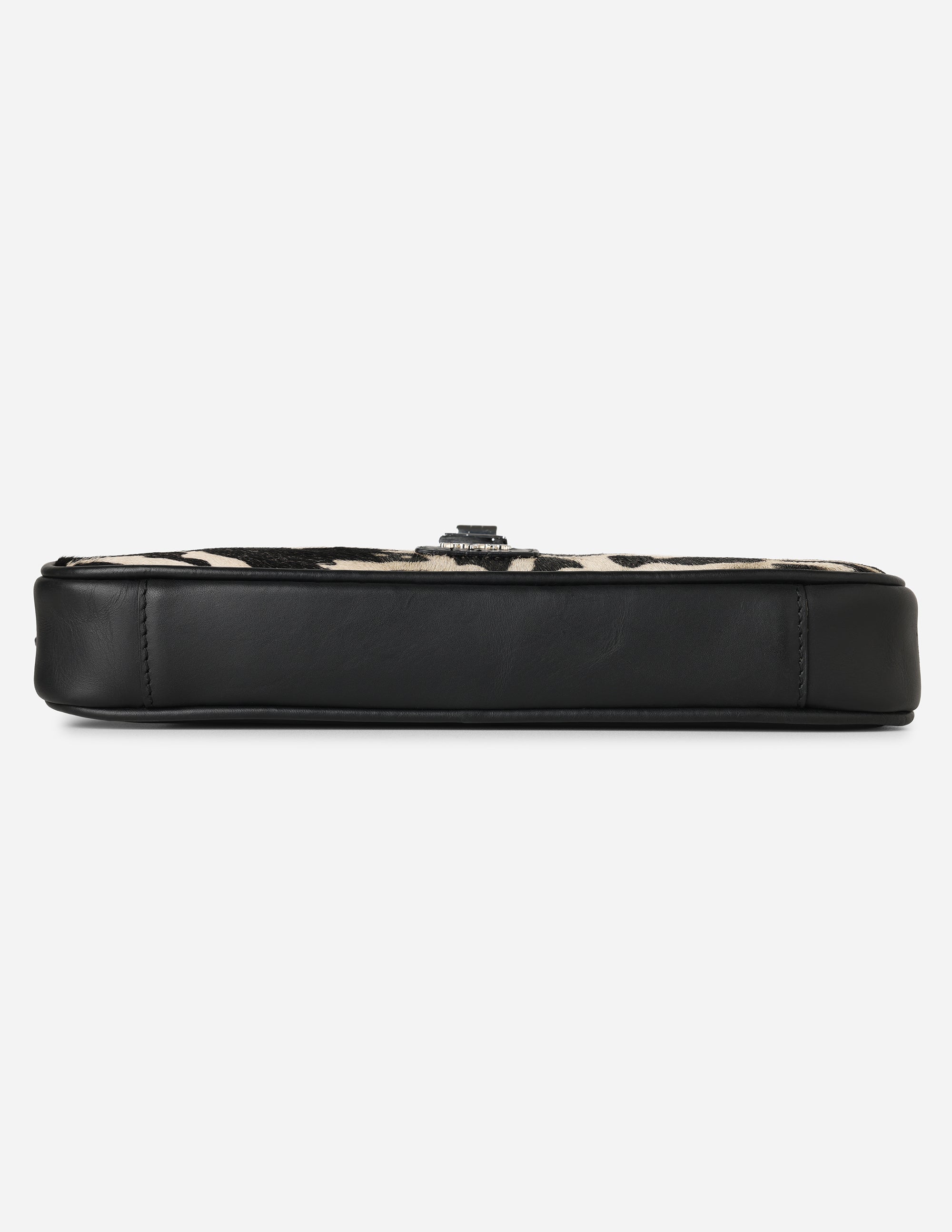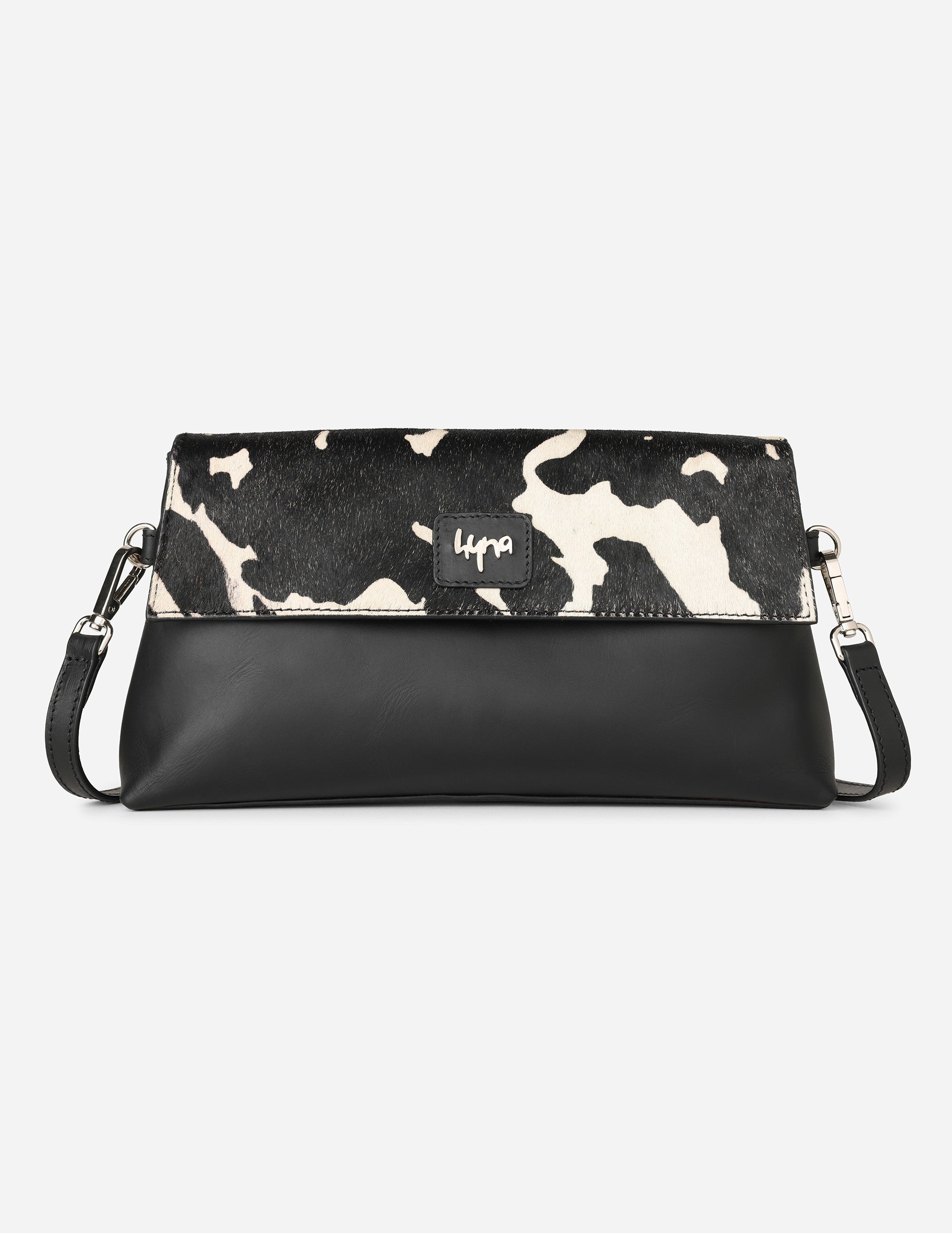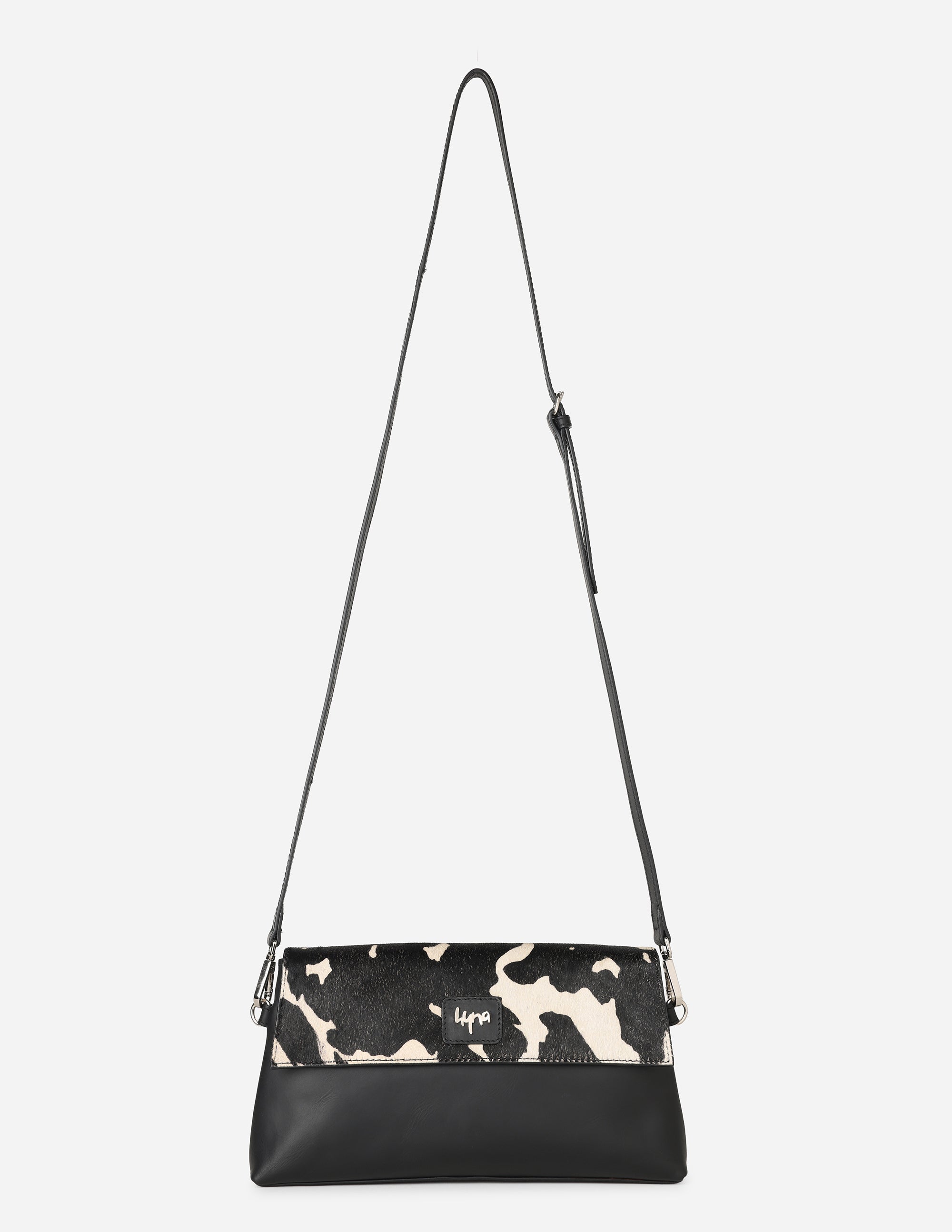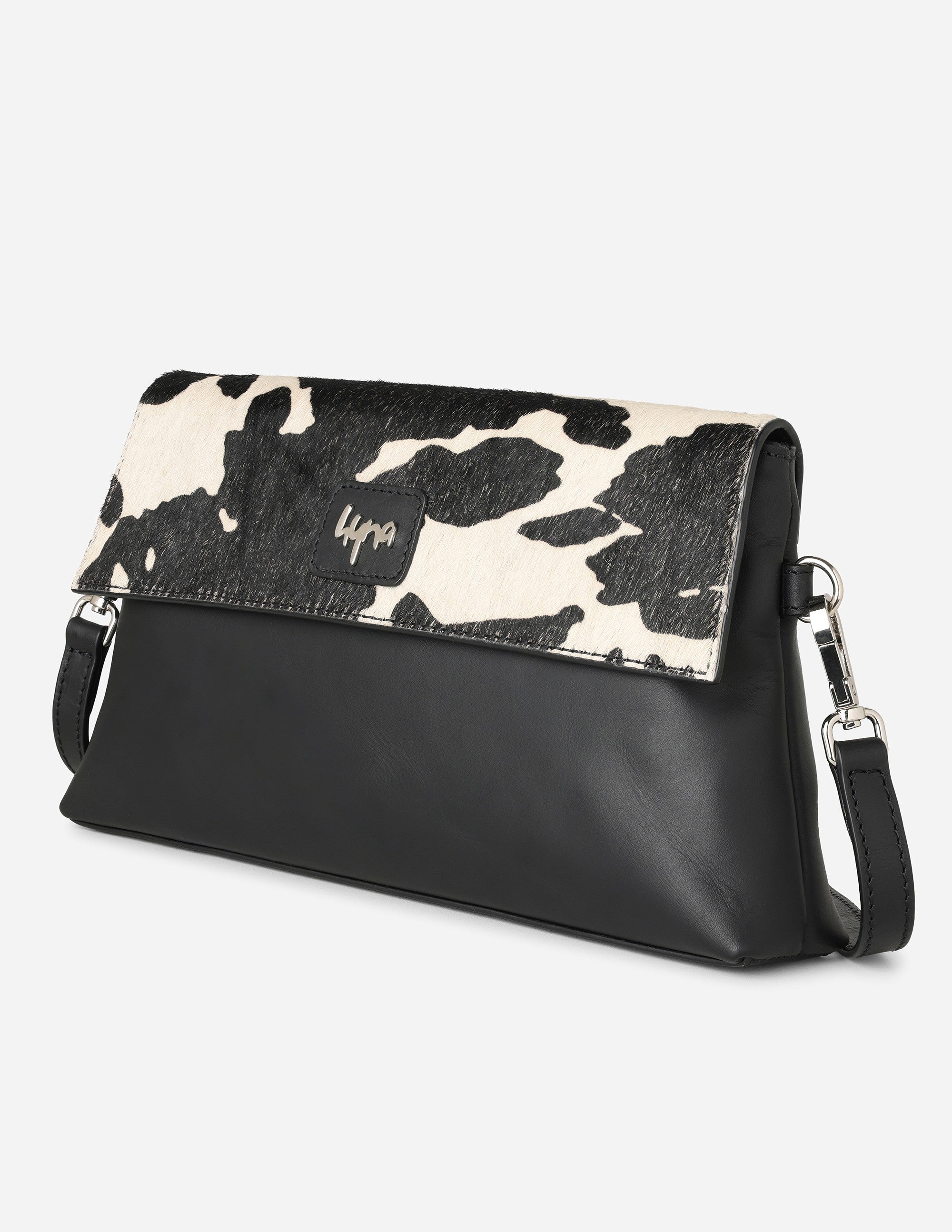 Crafted from premium full-grain leather, the flap features 100% natural cowhide, expertly hand-dyed to achieve a striking, consistent black and white contrast that defines the bag’s bold character.